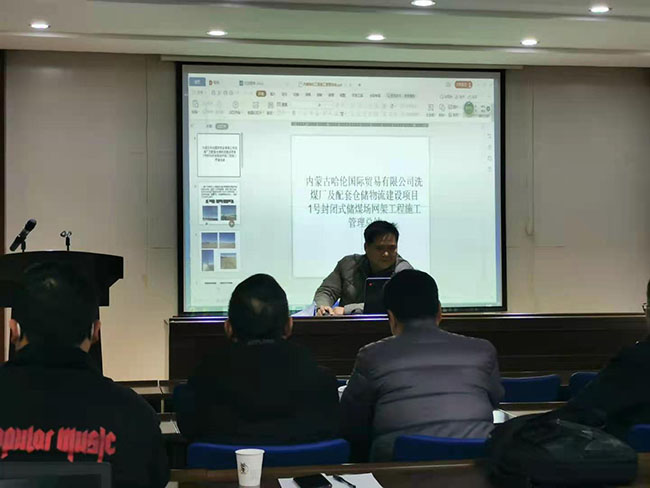 徐永兵同志介紹了哈倫能源項目的特點,對于拱形筒殼結(jié)構(gòu),公司首次采用從山墻起步吊裝的新工藝,取得了明顯的經(jīng)濟效益;同時,對網(wǎng)架分區(qū)的必要性和經(jīng)濟性進行了分析。