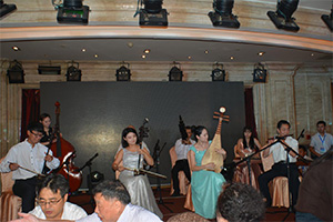 7月25日晚接待晚宴在中州國際飯店一樓宴會廳正式開始。隨后,由河南大學(xué)民樂團以及天津市鋼結(jié)構(gòu)學(xué)會代表聯(lián)袂奉上了歌曲、樂器合奏、曲劇等精彩的節(jié)目。