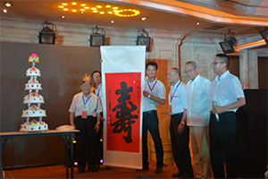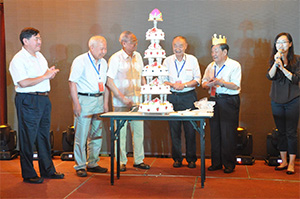 席間,在陳志華教授和賈莉秘書長的主持下,由工作人員推出了慶祝劉錫良教授88歲大壽的生日蛋糕,大家共同祝福劉錫良教授福如東海,壽比南山,紛紛向劉教授獻上了最誠摯的生日祝福,也同時祝愿四位院士及所有參會代表健康長壽。