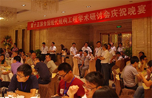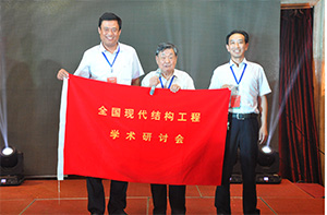 晚宴后期,舉行了全國現(xiàn)代結(jié)構(gòu)工程學(xué)術(shù)研討會的會旗交接儀式,主辦單位天津大學(xué)劉錫良教授從本屆承辦單位開封安利達金屬工程有限公司副總彭繼寬手中接過會旗,并交給下一屆承辦單位山東中通鋼構(gòu)建筑股份有限公司總工程師員建成手中,員建成總工并代表山東中通鋼構(gòu)承諾將承辦第十六屆全國現(xiàn)代結(jié)構(gòu)工程學(xué)術(shù)研討會。