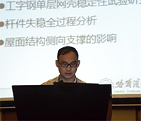 分會場A共進行了十四個學(xué)術(shù)報告。上半場的學(xué)術(shù)報告由中國鋼結(jié)構(gòu)協(xié)會專家委員會名譽主任陳祿如和天津大學(xué)建筑設(shè)計研究院于敬??偣ぶ鞒?。中國鋼結(jié)構(gòu)協(xié)會專家委員會資深專家劉錫霖作了《網(wǎng)架結(jié)構(gòu)事故淺析》的報告;天津大學(xué)建筑設(shè)計研究院總工程師張錫治作了《高強混凝土混合配筋預(yù)制框架管柱抗震性能研究》的報告;哈爾濱工業(yè)大學(xué)深圳研究生院教授級高工顧磊作了《考慮桿件失穩(wěn)的網(wǎng)殼結(jié)構(gòu)整體穩(wěn)定性研究》的報告;天津大學(xué)副教授劉紅波作了《鋼管扣件式支承架半剛性分析設(shè)計理論與安全控制技術(shù)》的報告;北京工業(yè)大學(xué)博士研究生李思遙作了《裝配式網(wǎng)格結(jié)構(gòu)體系的研發(fā)與思考》的報告;沈陽建筑大學(xué)碩士研究生朱紹杰作了《鋼筋混凝土柱正截面軸心受壓承載力計算公式的調(diào)整建議》的報告;上海交通大學(xué)碩士研究生吳族平作了《氣膜鋼筋混凝土穹頂薄殼結(jié)構(gòu)設(shè)計》的報告。