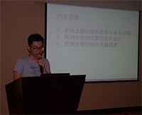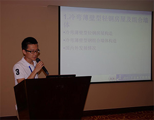 短暫的茶歇之后,由太原理工大學(xué)李海旺教授與北京科技大學(xué)牟在根教授主持下半場學(xué)術(shù)報告,大元建業(yè)有限集團工程師鄭培壯作了《BIM技術(shù)助力鋼結(jié)構(gòu)住宅工程施工》的報告;東北設(shè)計院高級工程師李豪邦作了《修訂抗震規(guī)范推進我國獨用千年的結(jié)構(gòu)自隔震設(shè)計》的報告;天津大學(xué)講師周婷作了《方鋼管混凝土組合異形柱框架擬靜力試驗》的報告;東南大學(xué)講師秦穎作了《矩形鋼管混凝土梁柱節(jié)點研究》的報告;上海機電設(shè)計院高級工程師邱鵬作了《大底盤轉(zhuǎn)換懸掛鋼框架結(jié)構(gòu)的設(shè)計實踐》的報告;同濟大學(xué)博士生熊哲作了《節(jié)點剛度對鋁合金板式節(jié)點網(wǎng)殼穩(wěn)定性能的影響》的報告;湖南大學(xué)博士生髙宛成作了《冷彎薄壁型鋼竹膠合板組合墻體抗震性能試驗研究》;上海交通大學(xué)碩士生沈珊珊作了《大型充氣膜結(jié)構(gòu)三維攝影測量實用方法》。