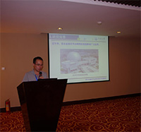 分會場B共進行了十五個學(xué)術(shù)報告。上半場的學(xué)術(shù)報告由華南理工大學(xué)王仕統(tǒng)教授和同濟大學(xué)羅永峰教授主持。華北水利水電大學(xué)教授魏群作了《結(jié)構(gòu)工程數(shù)字圖形容融合集成技術(shù)》的報告;北京工業(yè)大學(xué)教授曹萬林作了《再生混凝土結(jié)構(gòu)研究與規(guī)程編制》的報告;河南大學(xué)教授杜文風(fēng)作了《新型CSIPs薄殼結(jié)構(gòu)的受力性能與連接設(shè)計》的報告;上海現(xiàn)代設(shè)計院高級工程師崔家春作了《ETFE材料力學(xué)性能試驗研究》的報告;中國電子工程設(shè)計院高級工程師張相勇作了《唐山勒泰中心超大型商業(yè)綜合體結(jié)構(gòu)設(shè)計》的報告;天津大學(xué)副教授朱海濤作了《特高壓輸電線路桿塔基礎(chǔ)承載力可靠度分析》的報告;北京工業(yè)大學(xué)博士李鑫作了《預(yù)應(yīng)力混凝土收縮徐變的有限元分析》的報告。