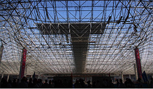 7月26日下午2:00與會代表分乘三輛大巴進行工程參觀,參觀包括承辦方安利達金屬工程有限公司的廠區(qū)與承辦單位正在施工的鄭州國際機場二期工程換乘中心空間網(wǎng)格結(jié)構(gòu)工程。