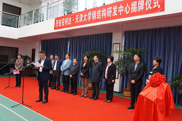 開封市委常委、組織部部長何偉在致辭中:對天開聯(lián)合研發(fā)中心的成立表示祝賀,對天津大學(xué)領(lǐng)導(dǎo)專家表示衷心感謝,同時對天開鋼結(jié)構(gòu)聯(lián)合研發(fā)中心提出了希望和要求:首先,精誠合作,推動共贏發(fā)展。其次要精心耕作,不斷完善創(chuàng)新服務(wù)運(yùn)行模式。第三,要精心管護(hù),努力打造天開鋼結(jié)構(gòu)研發(fā)品牌。實(shí)現(xiàn)開封鋼結(jié)構(gòu)產(chǎn)業(yè)化,通過與天津大學(xué)的合作,著力提高開封安利達(dá)金屬工程有限公司的鋼結(jié)構(gòu)和裝配式建筑創(chuàng)新、集成創(chuàng)新、引進(jìn)消化吸收再創(chuàng)新能力,帶動企業(yè)科技創(chuàng)新人才的成長,打造出全新的企業(yè)品牌。