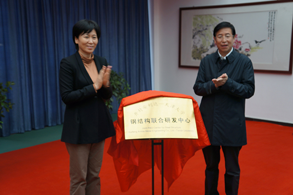 最后,在熱烈的掌聲中,開封市市長候紅,天津大學(xué)李家俊書記共同為天開鋼結(jié)構(gòu)聯(lián)合研究中心揭牌及合影留念。